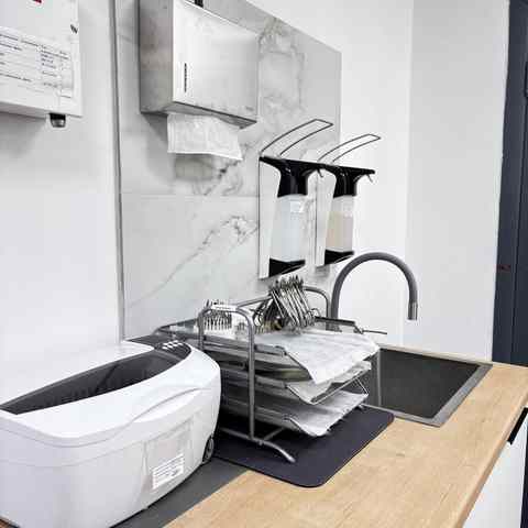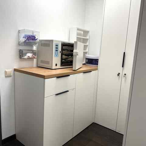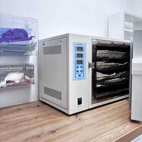 Инструменты проходят дезинфекцию в ультразвуковой мойке, а потом стерилизацию в сухожаре «Витязь ГП-20» при температуре 180 °C. Одноразовые материалы используются строго по назначению.